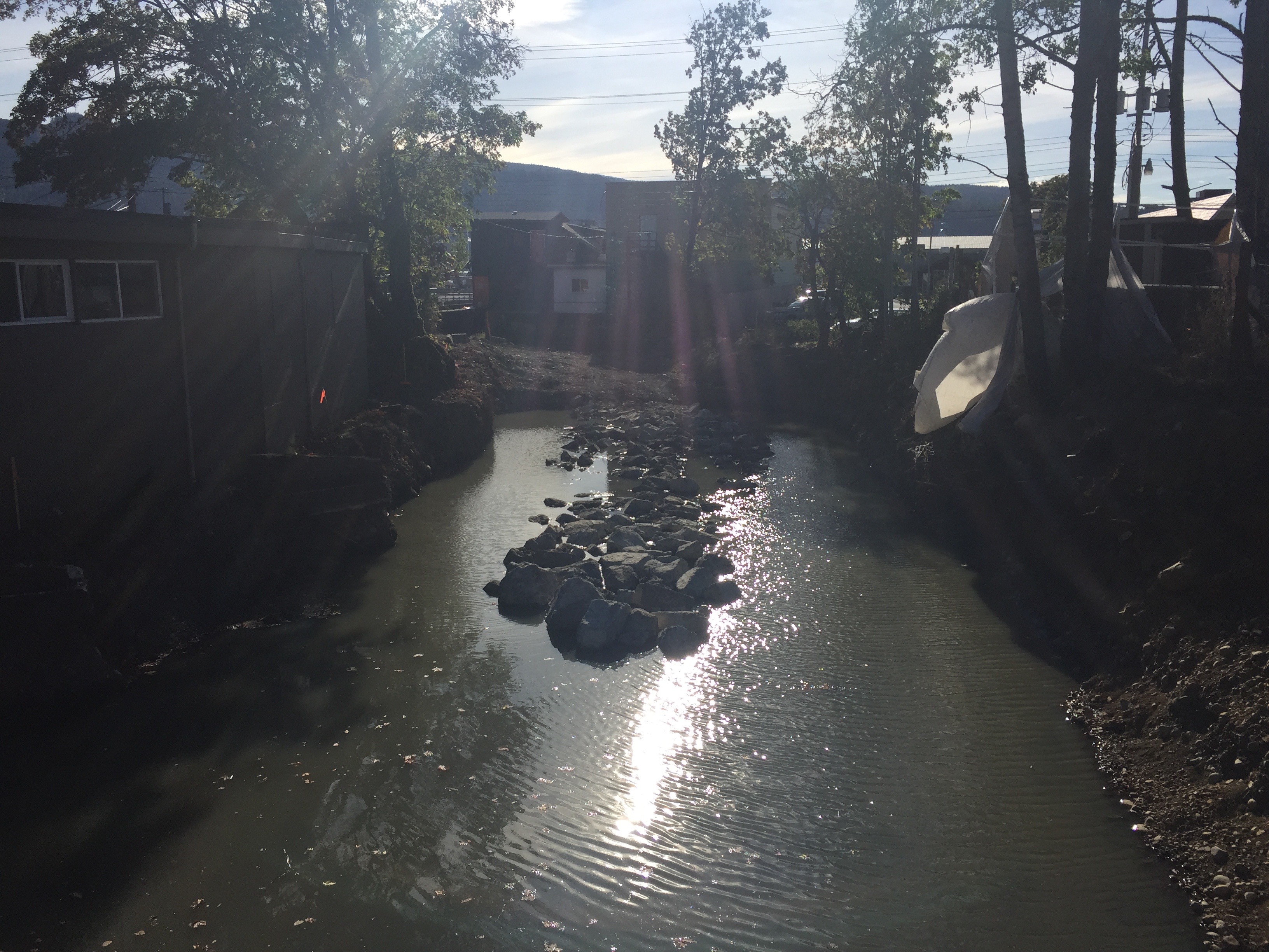 From the creek bed behind the Jade Restaurant.